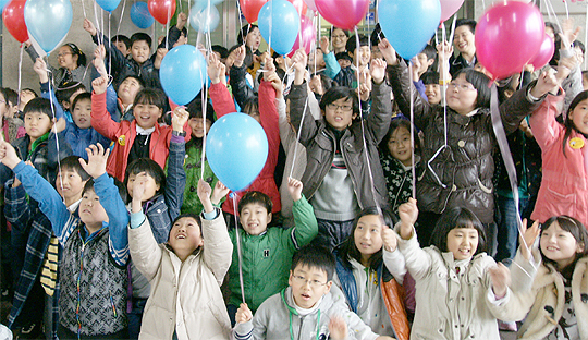 1일 전주정보영상진흥원 '2010년 전주문화영재캠프 발대식'에서 아이들이 풍선을 날리고 있다.