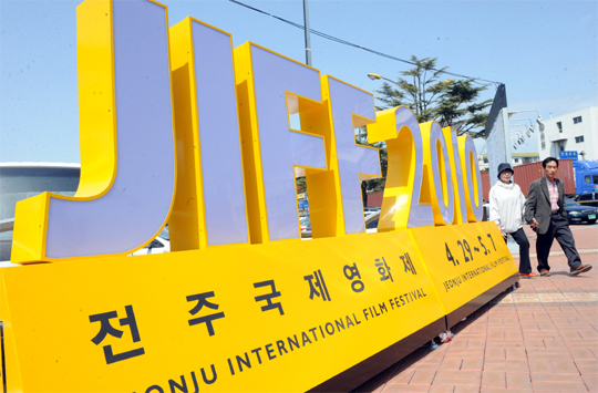 전주국제영화제를 20여일 앞둔 5일 전주 경기장 네거리에 영화제를 알리는 홍보 조형물이 설치됐다. 전주국제영화제는 오는 29일 개막식을 시작으로 5월7일까지 전주 일원에서 열린다.