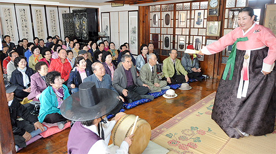 6일 전주 학인당에서 열린 관객과 함께하는 판소리 다섯바탕 눈대목 공연에서 소리꾼 김연 씨와 고수 최만 씨가 공연을 하고있다.