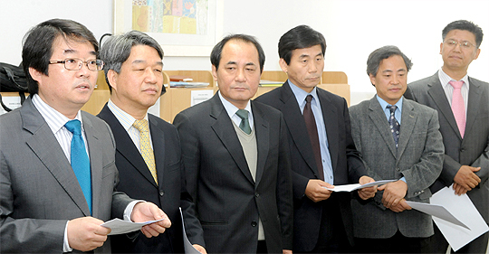 7일 전북도교육청에서 전북대와 군산대 우석대등 도내 6개 대학교수 130여명이 도내 종교계·학계·시민사회단체의 추대를 받아 6·2 도교육감 선거에 출마한 김승환 예비후보를 지지하는 기자회견을 하고 있다.
