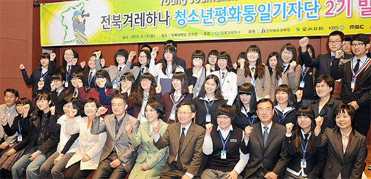 10일 전북대학교 진수당에서 열린 청소년평화통일 기자단 2기 발대식에서 참석자들이 파이팅을 하고 있다.