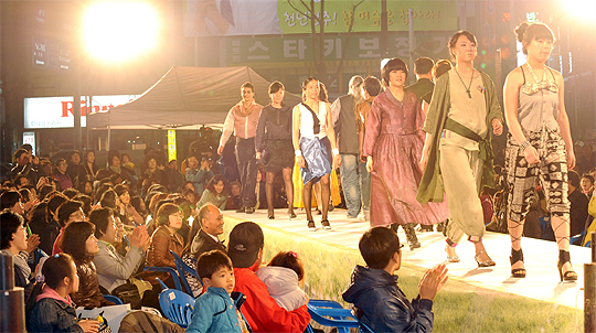 10일 전주오거리문화광장에서 제8회 물사랑·지구사랑 글로벌 환경문화축제 일환으로 열린 제4회 재활용 리폼 패션쇼에서 재활용한 의상을 입은 시민 모델들이 걷고 있다.