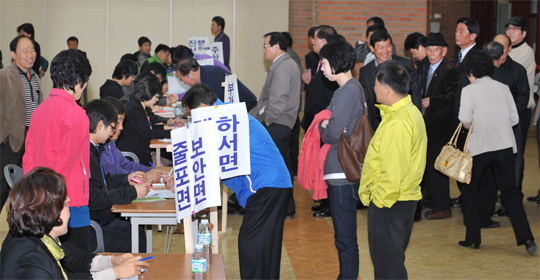 11일 부안예술회관에서 열린 민주당 부안군수 후보 경선에서 당원들이 투표를 하고 있다.