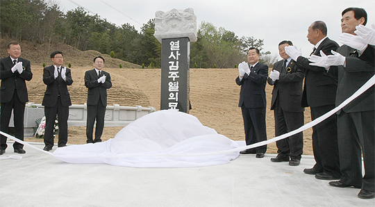 4·19혁명 50주년을 맞아 19일 남원시 금지면 옹정리에서 김주열 열사의 숭고한 희생과 넋을 기리기 위해 묘비 제막식을 하고 있다.