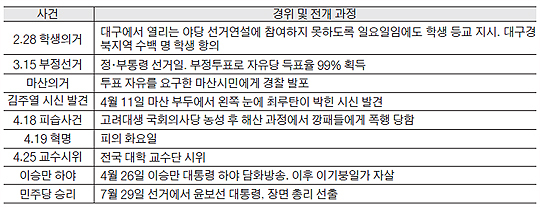 ▲1960년 4.19혁명 전개 과정을 아래 도표에 의해 서술해 보고 그 의미를 생각해 보세요.