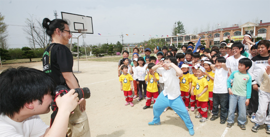 임실 대리초등학교 체육대회를 찾은 전북사진연구회 회원들이 졸업앨범 촬영을 하고 있다.