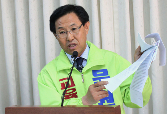 교육의원에 출마한 문원익 예비후보가 10일 군산시청에서 '괴문서 살포' 관련 기자회견을 하고 있다.