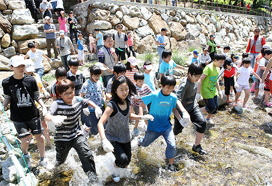 지난해 열린 무주구천동 철쭉 행사의 하나로 진행된 송어잡기 프로그램. (desk@jjan.kr)