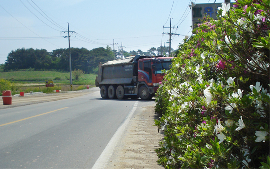 특히 이 공장 입구쪽에 있는 철쭉군락이 공장 출입구를 가리고 있어 운전자들이 도로로 갑자기 나오는 차량을 짐작하지 못해 위험에 노출돼 있다는 지적이다.