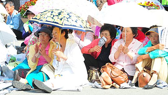 정읍에서 열린 선거 유세활동에서 시민들이 도로에 앉아 후보들의 공약을 경청하고 있다.