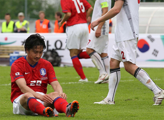 30일 오스트리아 쿠프슈타인 경기장에서 열린 한국-벨라루스와 평가전에서 안정환이 슛이 빗나가자 안타까워하고 있다.