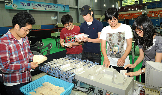 6·2 전국지방선거 개표 장소인 전주 덕진 실내배드민턴경기장에서 개표 요원들이 투표지 분류기 운영부에서 최종 점검을 하고 있다.