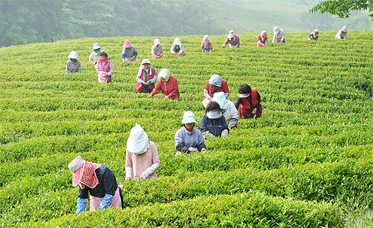 고창 도솔산의 너른 차밭에서는 녹차잎을 채취하는 손길이 바쁘다. 이 때 수확하는 잎까지를 작설차로 만들 수 있으며, 이 시기를 지나 채취하는 녹차잎은 발효차로 만들어진다.
