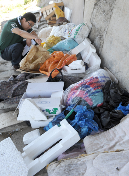8일 전주 남부시장 매곡교 다리 밑에 각종생활쓰레기들이 방치 돼 있어 악취를 유발하고 있다.
