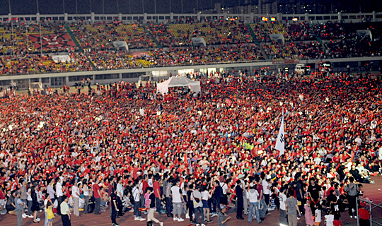 12일 전주종합경기장에서 열린 2010 남아공월드컵 대한민국 대 그리스 경기의 응원전에서 수많은 시민들이 몰려 경기를 관람하고 있다.