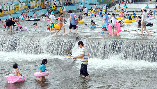 25일 정읍천 청소년 물놀이장에서 시민들이 물놀이를 하며 무더위를 식히고 있다.