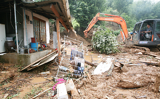 또한 여산면 천호산 계곡에서는 산사태가 발생해 인근 원수리 연명마을 등 7개 마을에 빗물과 토사가 덮쳐 주택 100여채가 침수·파손됐으나 주민들의 신속한 대처로 인명피해는 없었다.