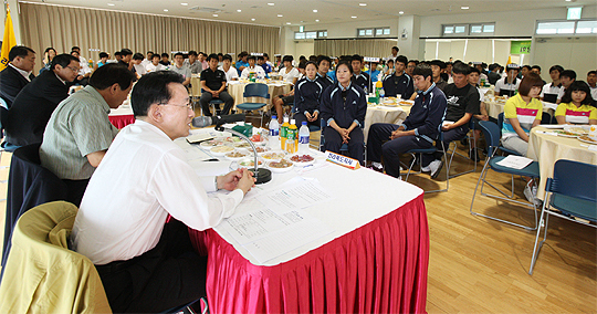 전국체육대회를 50여일 앞두고 17일 도체육회관에서 김 지사 주재로 전국체전 관계자 필승 간담회가 열렸다.