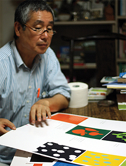 '날개할아버지의 우리 아기 눈맞춤책'은 세상에 갓 태어난 아기에게 엄마 아빠가 보여주는 눈맞춤 그림책이다. 안교수는 "우리나라에 초첨책은 많지만, 단순 도형 혹은 외국 것을 변형한 것이 대부분"이라며 "한국적 정서를 담은 초점책을 만들고 싶었다"고 말했다. 그는 "그래서 조선시대 민화에서 추출한 요소, 한국전통 문양집에서 추출한 요소를 바탕으로 그래픽을 만들었다"고 설명했다.