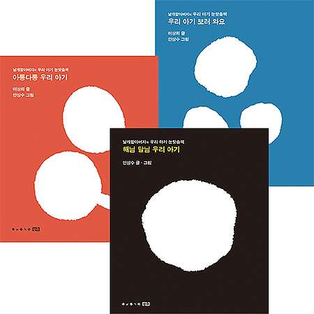 1권 「해님 달님 우리 아기」는 0~2개월된 아기의 시각 발달을 도와주는 책. 명암의 구분은 가능하지만 색은 명확하게 구분하지 못하는 신생아의 특성을 반영, 뚜렷하게 대비되는 흑백 문양으로 구성했다. 2권 「아롱다롱 우리 아기」는 색을 인지하기 시작하는 3~5개월된 아기를 위한 것으로, 조선시대 민화에서 따온 문양에 오방색을 넣어 아기들의 정서와 지능 발달에 도움을 줄 수 있도록 했다. 3권 「우리 아기 보러 와요」는 형태를 완전히 구분하는 생후 6개월 정도의 아기들에게 빛깔을 구분하고 사물을 인지하도록 도와준다.