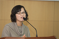 사단법인 마실길(이사장 김광오·동아일보 기자)이 지난 1일 전북도청에서 주최한 세미나. '소심하고 겁 많고 까탈스러운 여자 혼자 떠나는 걷기 여행'의 저자이자 도보 여행가인 김남희 씨(40)가 '지구를 두 발로 걷는다'라는 주제로 강연했다.