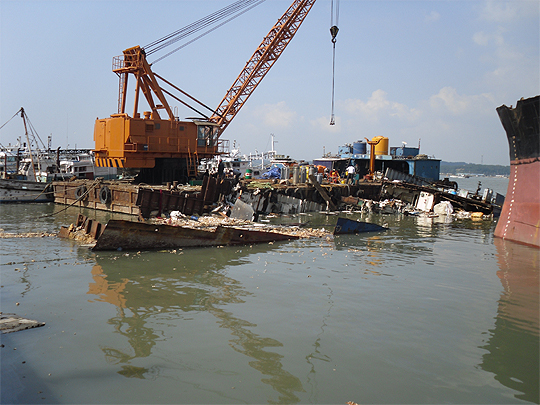 사업자, 임시 정박장소서 폐선박 해체 작업