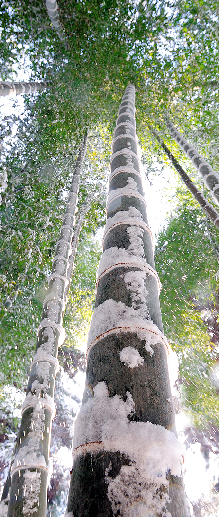 새해 아침, 전주 수목원 대나무에는 마디마디마다 흰 눈이 내려앉았습니다.