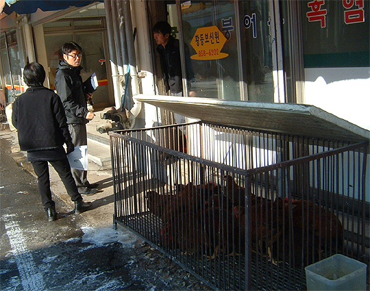 이들 공무원들이 서둘러 한씨 상가 앞 초원닭집으로 발길을 옮기자 인기척을 알아차리 듯 창문을 열며 얼굴을 내밀던 주인 이명숙씨(58)가 "내일부터 닭을 판매할 수 없다는 소식을 방송을 통해 들었다"며 보관중인 닭 모두를 오늘 살처분하겠다고 말한다.