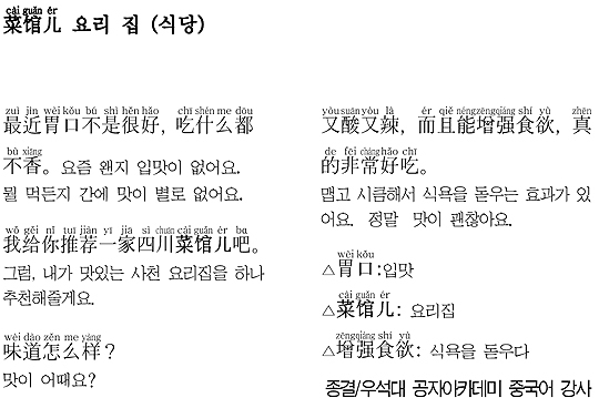 [회화 삼국지] 가가호호 중국어 - 요리 집(식당)
