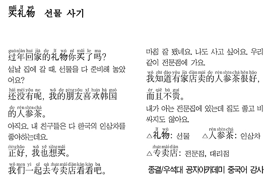 [회화 삼국지] 가가호호 중국어 - 선물 사기