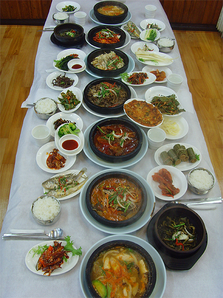 ▲신토불이 만을 고수하는'한국관'=신토불이 만을 고수하는 한국관은 직접 담은 고추장과 된장을 기본 재료로 향토적인 음식을 만들고 있다. 메인메뉴를 시키면 된장찌개, 더덕구이, 불고기, 버섯요리, 홍어찜 등 다섯가지 음식이 상에 오르고 계절에 따라 밑반찬 20여 가지가 제공된다. 반찬은 직접 정읍 재래시장에서 구입하며 봄에는 주변농가에서 채취한 것들을 내 놓는다.