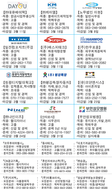 각 대학마다 졸업시즌이 끝나고 많은 구직자들이 자신에게 맞는 직장을 찾기 위해 분주히 움직일 때이다. 매년 상반기 2월~3월은 지자체 및 각 기관들의 취업박람회가 열리는 시점으로 올해도 전라북도와 전주시, 군산시, 익산시가 공동으로 GRAND 취업박람회를 개최한다. 취업박람회의 가장 큰 특징은 인사담당자의 얼굴을 보면서 서류전형과 동시에 면접까지 진행 할 수 있다는 점이다. 많은 구직자들이 취업박람회 현장을 찾고 있지만 성공취업을 위한 전략적인 부분은 매우 미약한 것 같다. 이번 주부터는 취업박람회 200% 활용하기란 주제로 연제하고자 한다. 서류전형에서부터 면접까지 이뤄지기 때문에 이력서와 자기소개서 그리고 정장차림까지 꼼꼼히 준비해야 한다. 먼저 온라인 박람회 사이트를 통해 어떤 기업이 참여하는지를 따져보고, 지원할 기업에 맞는 이력서와 자기소개서를 작성해야 한다. 아울러, 자기소개서 부분에서 가장 중요한 것은 '지원동기'이다. 지원동기를 작성할 때는 지원할 회사의 주력상품, 발전가능성, 시장포지션 등을 꼼꼼히 체크한 후 작성하는 것이 좋다.