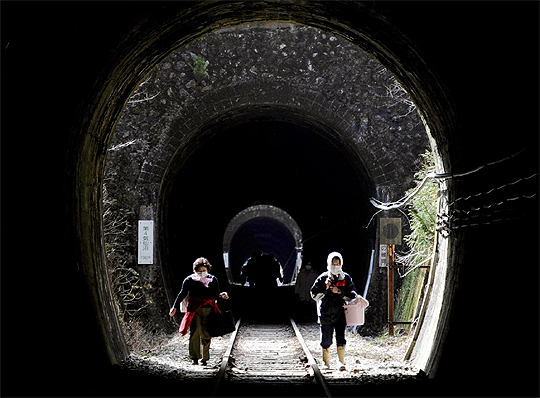 일본 동북부 지방에 발생한 사상 초유의 지진으로 피해가 확산되는 가운데 14일 오후 게센누마사 JR후나토선 철로 위를 이재민들이 지나고 있다. (desk@jjan.kr)