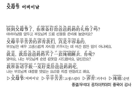 [회화 삼국지] 가가호호 중국어 - 어버이날