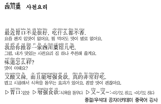 [회화 삼국지] 가가호호 중국어 - 사천요리