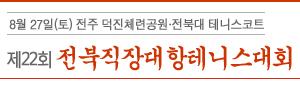전북일보사는 '제22회 전북직장대항 테니스대회' 를 오는 8월 27일 전주 덕진체련공원 테니스코트와 전북대 테니스코트에서 개최합니다.