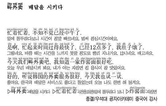 [회화 삼국지] 가가호호 중국어 - 배달을 시키다