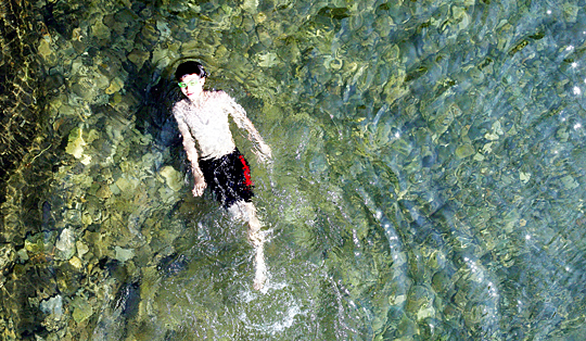 도내 9개 지역에 폭염주의보가 내려지는 등 30℃를 웃도는 무더운 날씨를 보인 18일 전주 교통 한벽당 앞 전주천에 한 아이가 물속에 뛰어들어 더위를 식히고 있다.