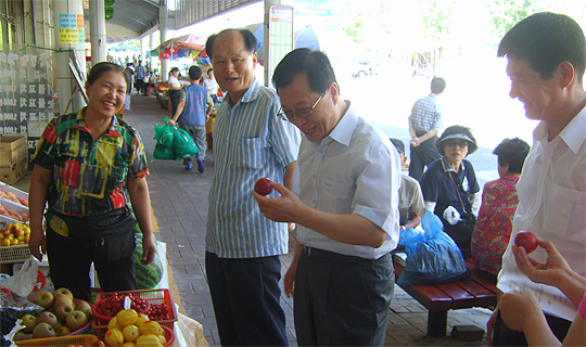 20일 익산우체국 직원들이 전통시장에서 물건을 고르고 있다.