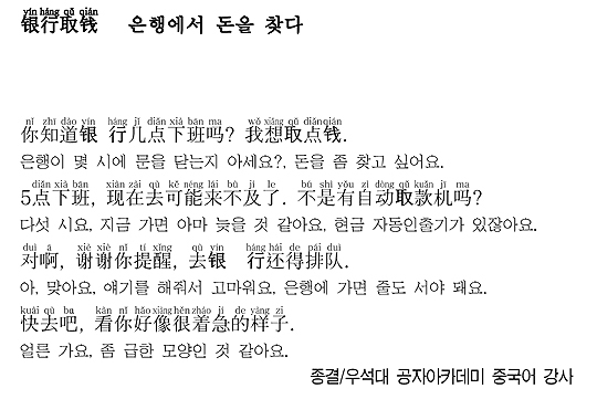 [회화 삼국지] 가가호호 중국어 - 은행에서 돈을 찾다