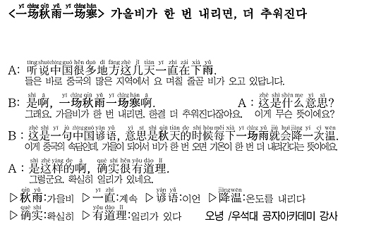 [회화 삼국지] 가가호호 중국어 - 가을비가 한 번 내리면, 더 추워진다