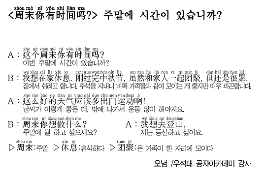 [회화 삼국지] 가가호호 중국어 - 주말에 시간이 있습니까?
