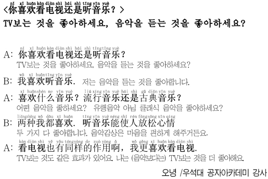[회화 삼국지] 가가호호 중국어 - TV보는 것을 좋아하세요, 음악을 듣는 것을 좋아하세요?