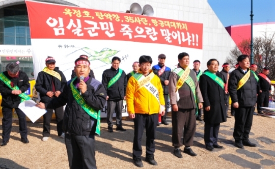 임실군 항공대이전반대대책위와 주민들이 16일 전주시청 광장에서'국방부의 항공대 임실 이전 반대'를 주장하는 집회를 열었다. 이날 집회에는 임실군 주민들과 지역 군·도의원, 총선 출마자 등 600여명이 참석했다.
