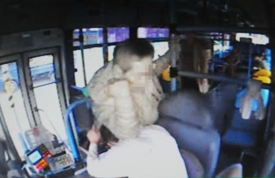 15일 오후 5시 20분께 시내버스 내 CCTV에 촬영된 운전기사 폭행 모습.