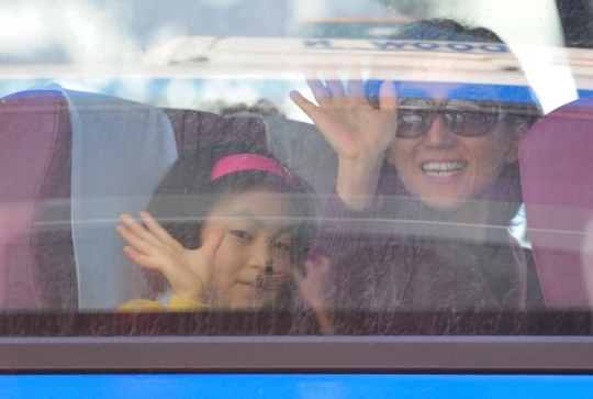 설 연휴 마지막 날인 24일 귀경길에 오르는 사람들로 북적인 전주 고속터미널에서 한 귀성객이 배웅나온 가족에게 손을 흔들며 떠나고 있다.