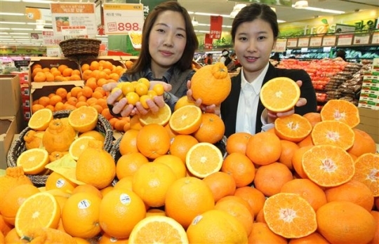 한파경보가 몰아친 30일 서울 용산 이마트가 한라봉과 레드향, 금귤 등 비타민C가 많이 함유된 과일을 시중보다 20% 저렴하게 판매하고 있다. 비타민C는 특히 감기예방과 피로회복에 도움을 주는 것으로 알려져 있으며 알약을 복용하는 것 보다 평소 야채와 과일을 충분히 먹는 것이 효과적이다. 연합뉴스