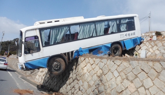 버스는 내리막길 30여m를 미끄러졌지만 계단식 묘지가 제동장치 역할을 하면서 멈춰 선 것으로 알려졌다.