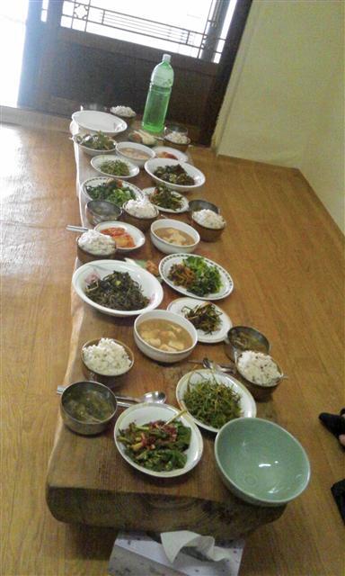 봄동 향이 좋다. 전잎과 뿌리 부분만 다듬고, 조심스럽게 흐르는 물에 씻는다. 봄동 겉절이와 된장·초무침을 해야겠다. 끓는 물에 소금 한 스푼 넣고, 살짝 데쳐낸 뒤 찬물에 헹군 다음 된장 한 스푼에 들기름 한 방울을 넣고 조물조물 무쳤다. 봄동 겉절이는 멸치액젖과 고춧가루를 넣고, 봄동 초무침은 매실 식초를 넣어 만든 고추장 양념에 오미자 효소를 넣고 새콤달콤하게 무쳤다. 한바탕 부산스럽게 점심을 준비하고 시내에 살고 있는 동희·정은이네를 불렀다. 우리집은 6인상이다. 모두가 둘러 앉아 입맛을 당긴다며 젓가락질하기에 바쁘다. 계절을 담은 봄동나물로 점심 밥상을 차렸다.