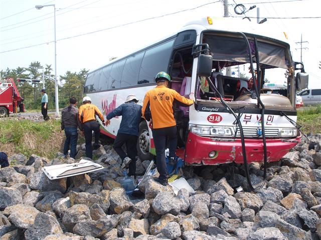 경상을 입고 치료를 받는 신모양(14)은 "선생님이 버스가 출발하기 전에 안전벨트를 매라고 하셔서 대부분 안전벨트를 착용했고, 한림공원 관광을 마치고 다음코스로 이동중이었다"며 "트럭이 버스 앞쪽의 옆을 들이 받은 것 같다"고 말했다.